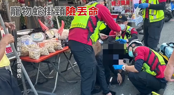 驚險!男子遛蛇暈倒被蟒纏頸,路人持棍驅蛇救人
