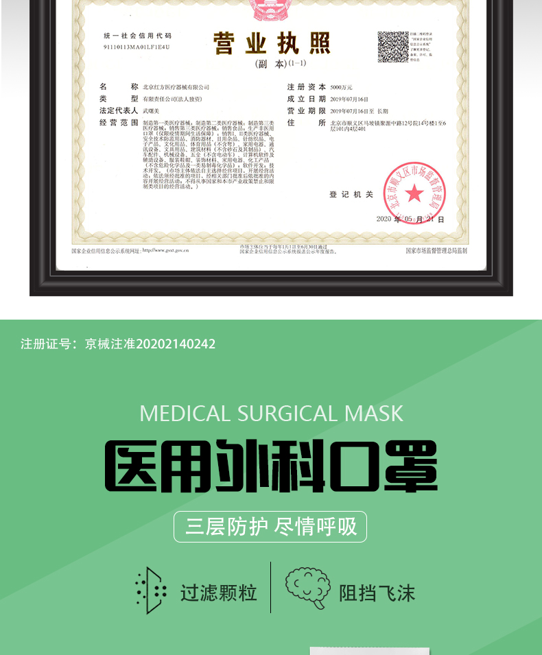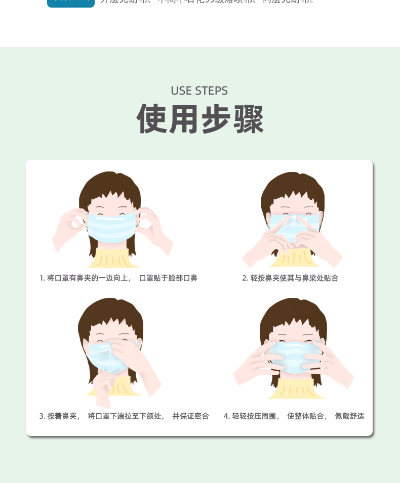 【適用范圍】醫用外科口罩適用于醫務人員或相關人員的基本防護,以及在有創操作過程中阻止體液和噴濺物傳播的防護。